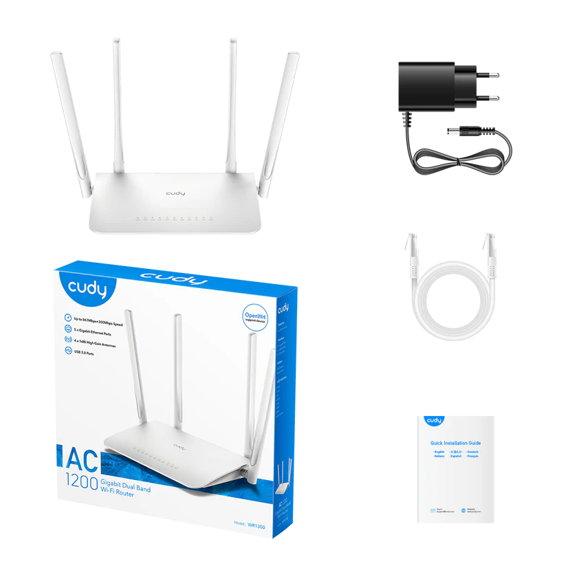 ორმაგი ზოლიანი AC1200 WiFi როუტერი იდეალურია გლუვი 4K დაკვრისთვის, თამაშებისთვის, მაქსიმუმ 1000 Mbps ინტერნეტთან დასაკავშირებლად, Cudy Mesh-ით, აპლიკაციის კონტროლით, VPN და MU-MIMO-ით.